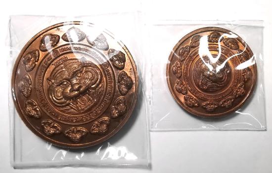 ( เคาะเดียว 2 เหรียญ พร้อมกล่องเดิม ) เหรียญหลวงพ่อเพี้ยน มงคลบารมี ทวีโชค เนื้อทองแดง พิมพ์ใหญ่ 4.5 ซ.ม. + พิมพ์เล็ก 3.2 ซ.ม.