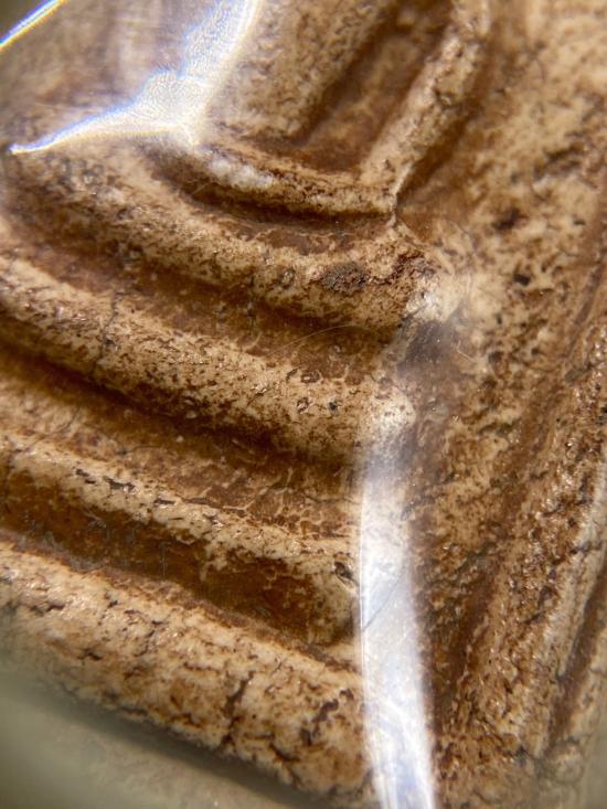 -ด้านหลังเรียบ มีรอยกดแม่พิมพ์ธรรมชาติ
