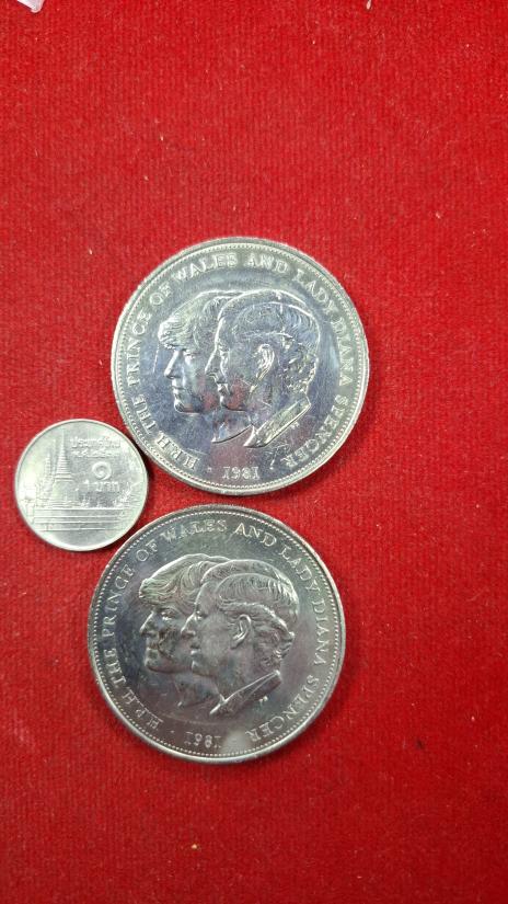 เหรียญที่ระลึกงานอภิเษกสมรสของเจ้าชายชาร์ลส์และเลดี้ไดอานา สเปนเซอร์ในปี 1981 เหรียญนี้ผลิตโดย The Royal Mint เพื่อเฉลิมฉลองงานอภิเษกสมรสของเจ้าชายชาร์ลส์และเลดี้ไดอานา 2เหรียญ |