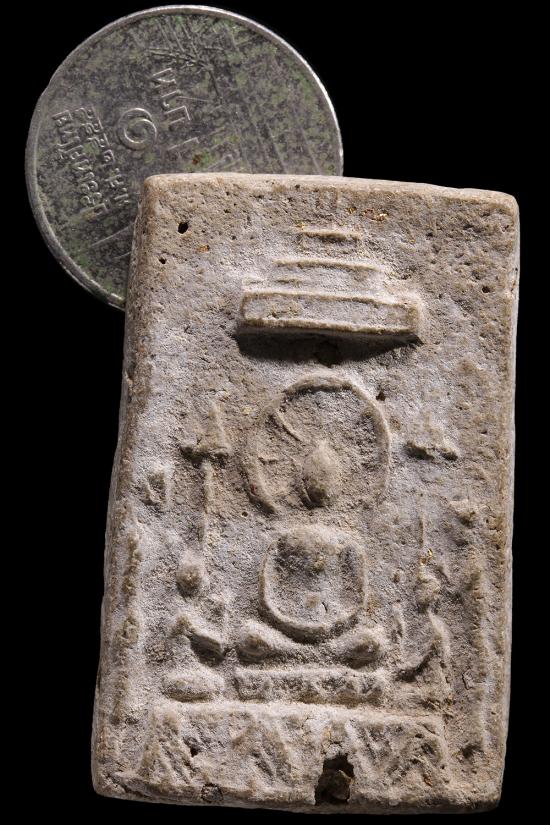 พระเนื้อผงเก่า พิมพ์ปรกฉัตร ข้างบริวาร เนื้อหาสยไม่ทราบที่ |
