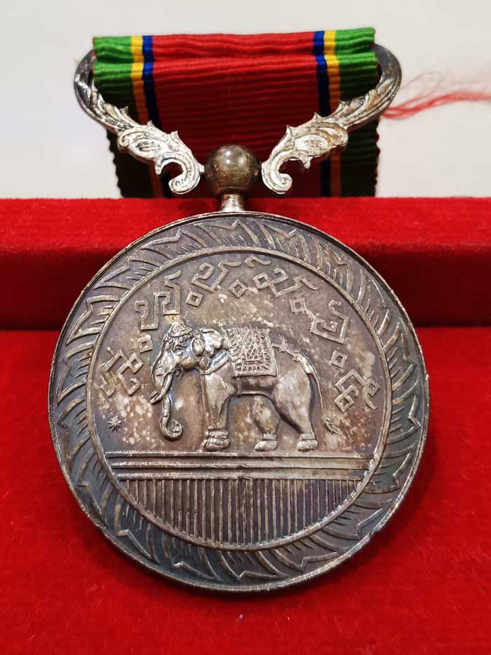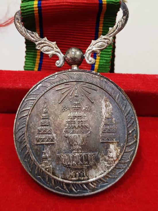 วัดใจเคาะเดียวแดง ++ เหรียญแพรแถบช้างเผือก ส.พ.ม.ช.จ.๕ เนื้อเงิน สภาพสวย