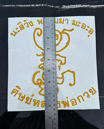 สติ๊กเกอร์ติดรถยนต์ หลวงพ่อกวย วัดโฆสิตาราม ยันต์ตุ๊กตา |