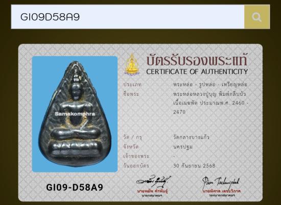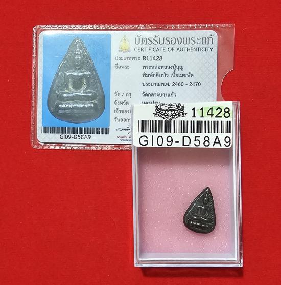 พระหล่อกลีบบัวหลวงปู่บุญ หลังยันต์สี่นิยมสุด วัดกลางบางแก้ว เนื้อเมฆพัตร ปี 2460 #พร้อมบัตรสมาคม