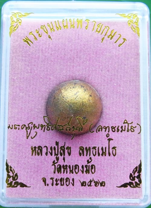 ลูกอมรวมมวลสารทาทอง หลวงพ่อทองสุข วัดหนองฆ้อ ปี 2562 (จัดสร้างพร้อมขุนแผนพรายกุมาร พิมพ์ใหญ่) พร้อมกล่องเดิม