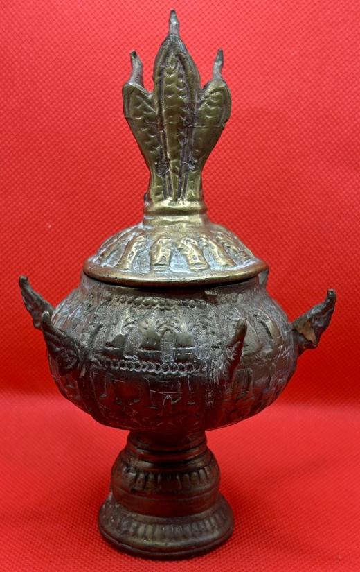 100 บาทครับ โถแป้งเจิม เนื้อโลหะ เก่ามาก ไม่ทราบทีครับ |