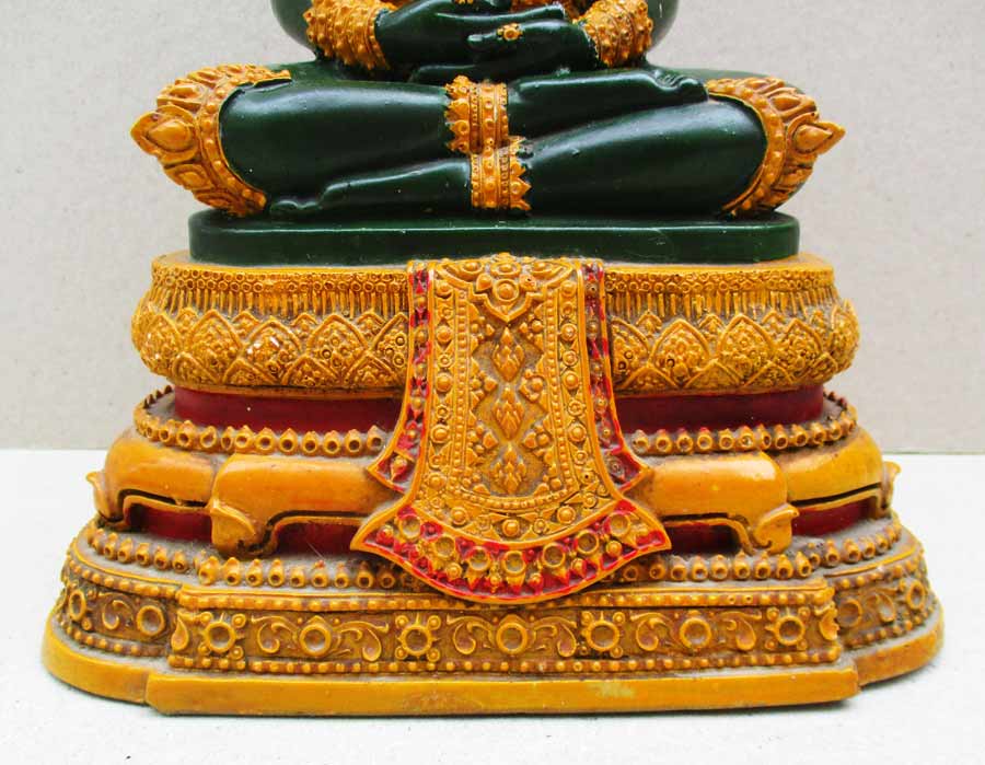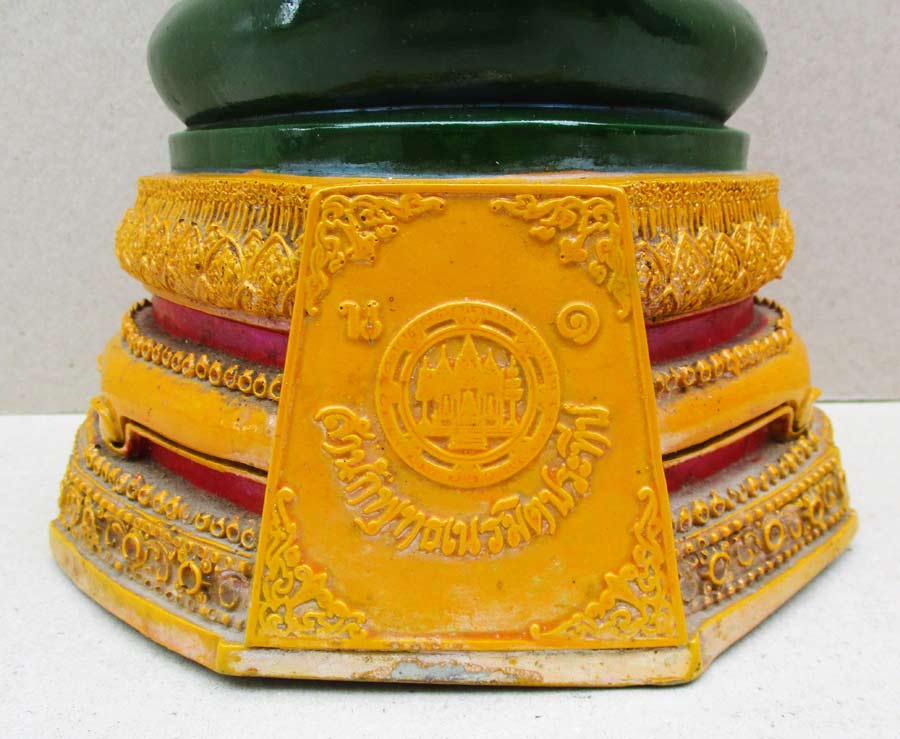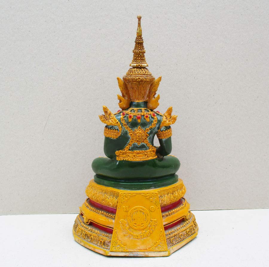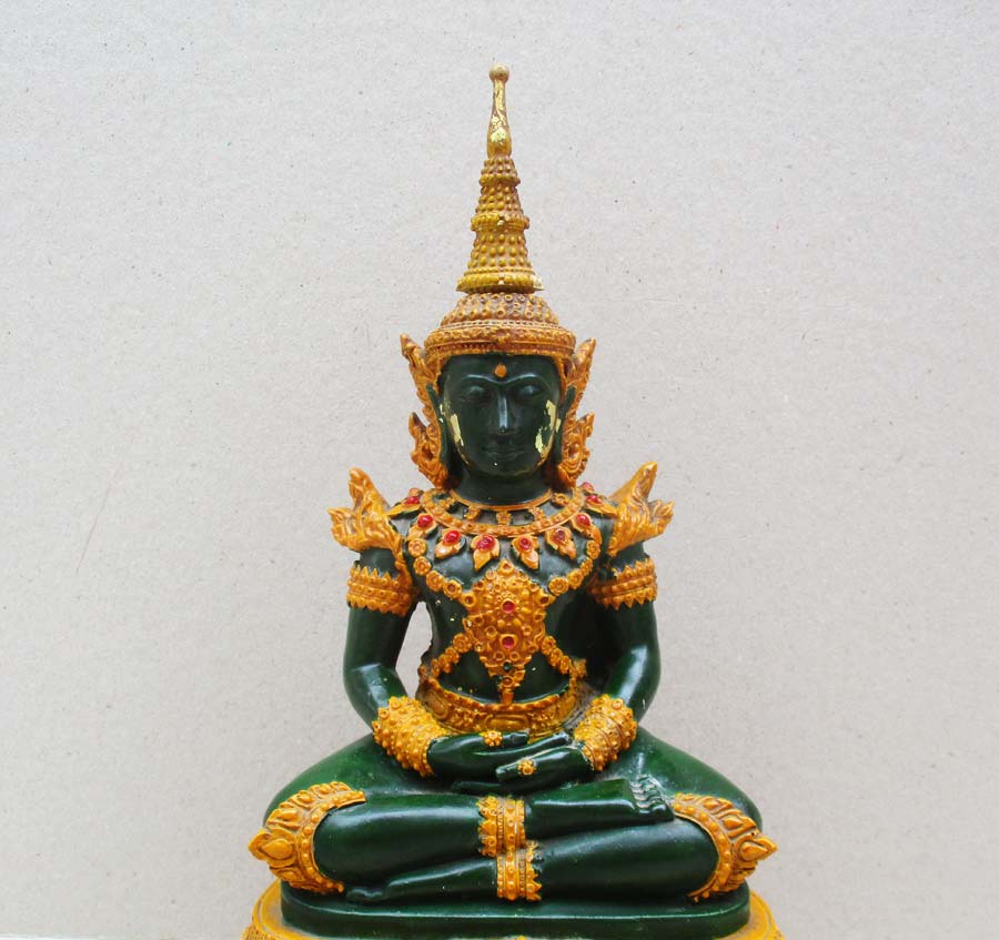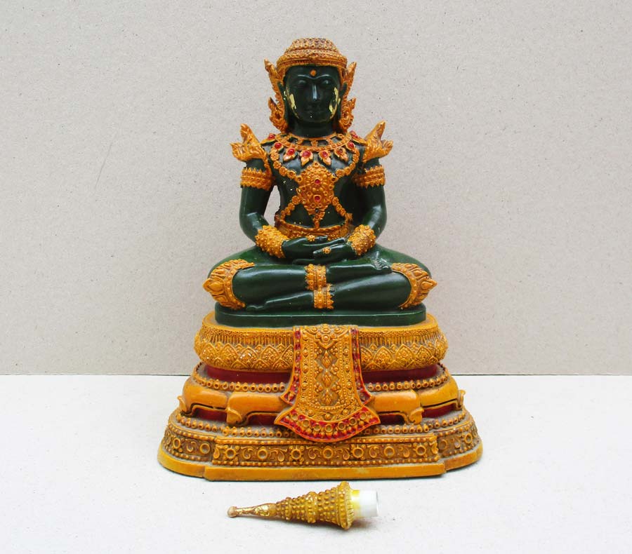 พระแก้วมรกต โดยสำนักพุทธเนรมิตประทีป เนื้อเรซิ่น เกศถอดได้ใต้ฐานอุดปูน ( สภาพเก่า ผิวปรอทเงาวับๆ !! ) |