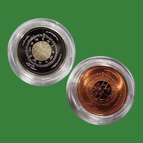 หลวงพ่อคูณ วัดบ้านไร่ รุ่นเสาร์ห้า พ.ศ.2537 เนื้อเงินขัดเงา + ทองแดงขัดเงา สภาพสวยตามรูป 2 องค์