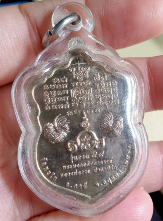 เหรียญเสมาหลวงพ่อรวยเนื้ออัลปาก้า เลี่ยมกันน้ำพร้อมใช้ไม่ทราบรุ่น เคาะเดียวแดง |