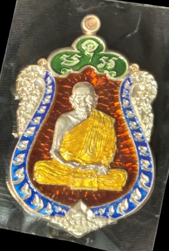 รายการที่ 3. เนื้อเงินลฃยา 4 สีพื้นแดงลงยาจีวรเหลือง ครับ