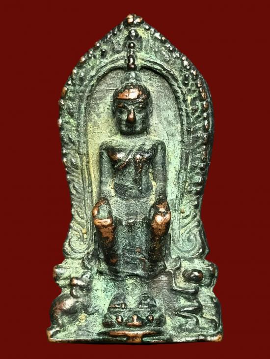 รูปหล่อหลวงพ่อโต วัดป่าเลไลยก์ สุพรรณบุรี ปี 2515 หลังพระผงสุพรรณ เนื้อนวะโลหะ ผิวหิ้ง |