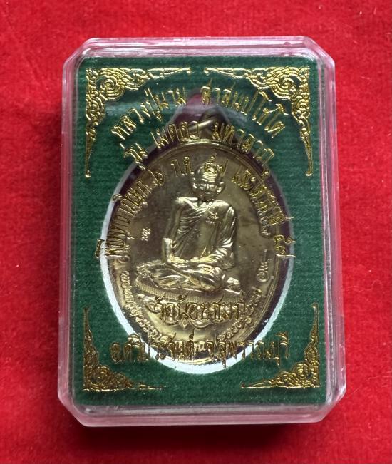 เหรียญหลวงปู่นาม วัดน้อยชมภู่ จ.สุพรรณบุรี รุ่นเมตตา มหาลาภ ปี 2557 เนื้อทองฝาบาตร หมายเลข 2714 |