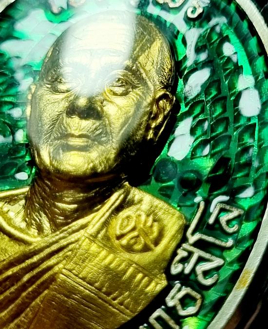 เจริญพรบน ลพ.ทอง วัดบ้านไร่ เนื้อเงินลงยาหน้ากากทองคำ2หน้า นำฤกษ์ หมายเลข10 พร้อมเลี่ยม