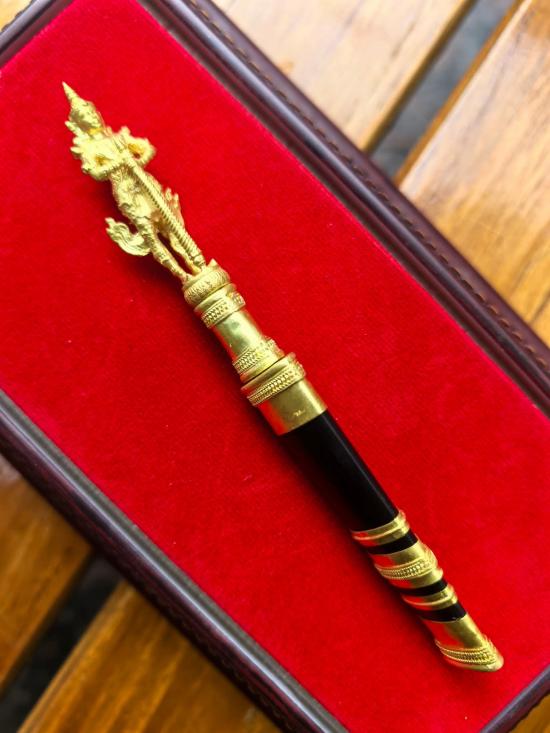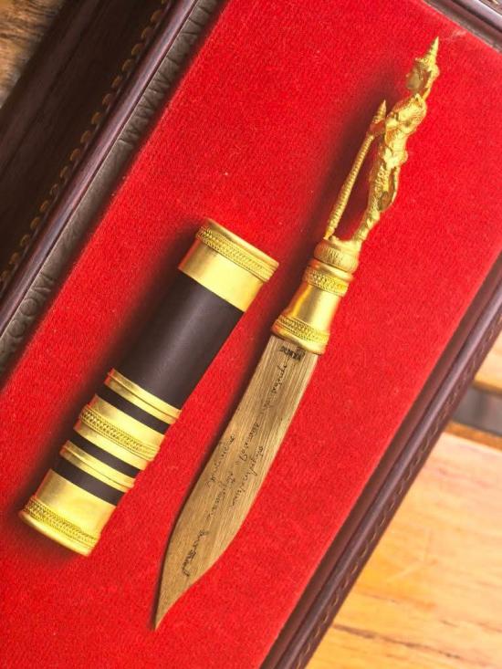 มีดหมอท้าวเวสสุวรรณทำลายโรค/ศัตรูพินาศหมด เลเซอร์ลายมือพระคุณหลวงพ่อฤๅษีลิงดำวัดท่าซุง ที่ใบมีดทั้ง 2 ด้าน |