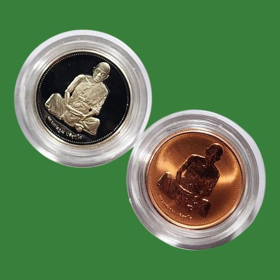 หลวงพ่อคูณ วัดบ้านไร่ รุ่นเสาร์ห้า พ.ศ.2537 เนื้อเงินขัดเงา + ทองแดงขัดเงา สภาพสวยตามรูป 2 องค์ |