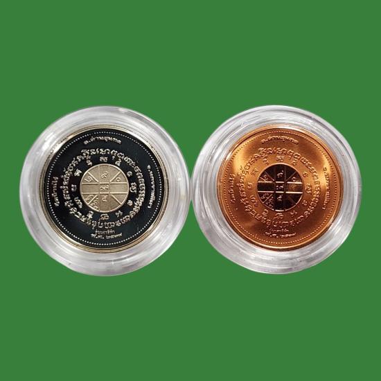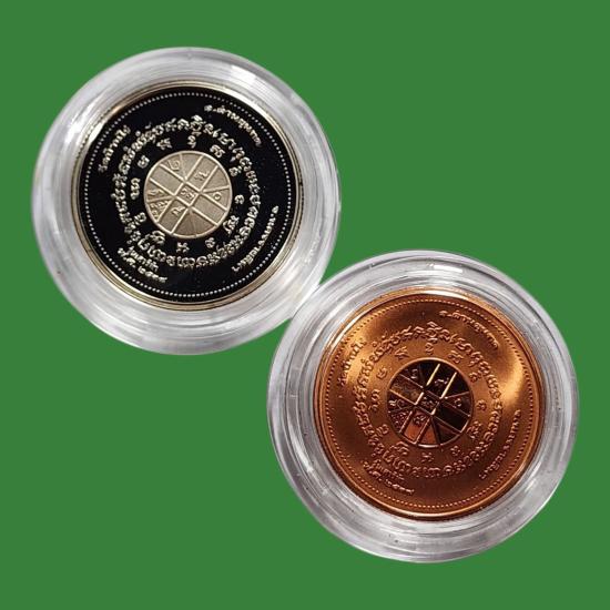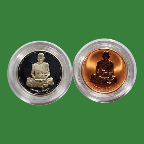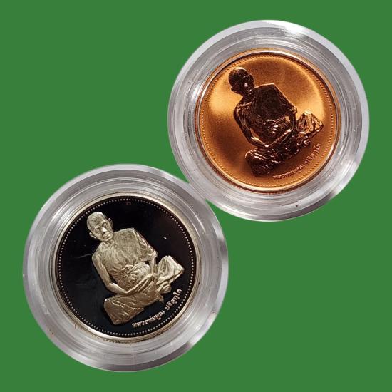 หลวงพ่อคูณ วัดบ้านไร่ รุ่นเสาร์ห้า พ.ศ.2537 เนื้อเงินขัดเงา + ทองแดงขัดเงา สภาพสวยตามรูป 2 องค์