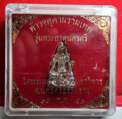 เริ้ม100บาท รูปเหมือนจตุคามรามเทพ วัดพระธาตุนครศรีฯ เนื้อเงิน สวย กล่องเดิม
