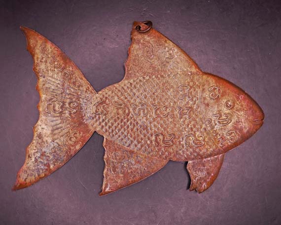 !!!!วัดใจ 9 บาท!!!! ปลาตะเพียน (ประหยัด) แผ่นโลหะ มีห่วงแขวน ขนาด 4 นิ้ว ไม่ทราบที่ครับ...ป2 |