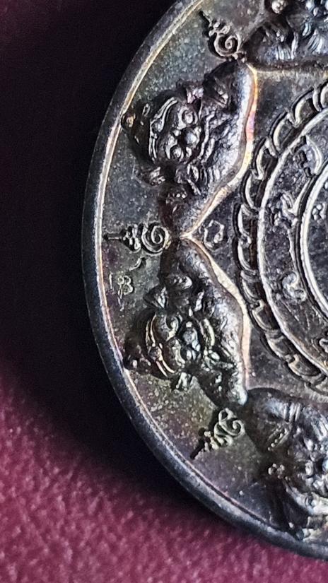 เหรียญขนาด 3.2 ซม. เนื้อเงิน(น้ำหนัก 25 กรัม) หมายเลข2 สภาพเก่าเก็บไม่ได้ล้าง ไม่มีกลอง