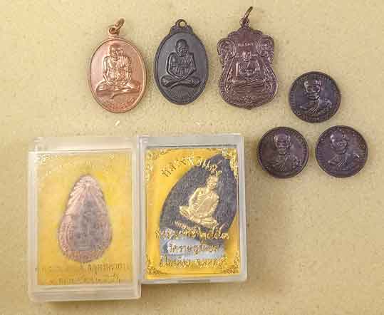 เหรียญหลวงพ่อปาน คลองด่าน 2 เหรียญ +เหรียญหลวงพ่อผา วัดไตรสามัคคี สมุทรปราการ+เหรียญหลวงพ่อบ้านแหลม วัดครุนอก+ผงหลวงพ่อแฉ่ง วัดราษฎรนิยม นนทฯ+เหรียญหลวงพ่อสนธิ์ วัดปราสาท นนทฯ 3เหรียญ |