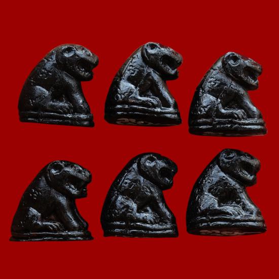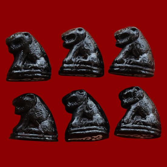 ชุด 6 องค์...พยัคฆ์ปากน้ำโพ (ลอยองค์) เนื้อผงมวลสารลงรักดำ ใต้ฐานหลวงพ่อจารยันต์ ปี 2561 หลวงพ่อหวัน วัดใหม่หนองน้ำขุ่น จ.นครสวรรค์ พร้อมซองรูปใบฝอยเดิมจากวัด สภาพพระตามรูปทุกประการ (ขนาดประมาณ 2 x 2.2 ซม.)
