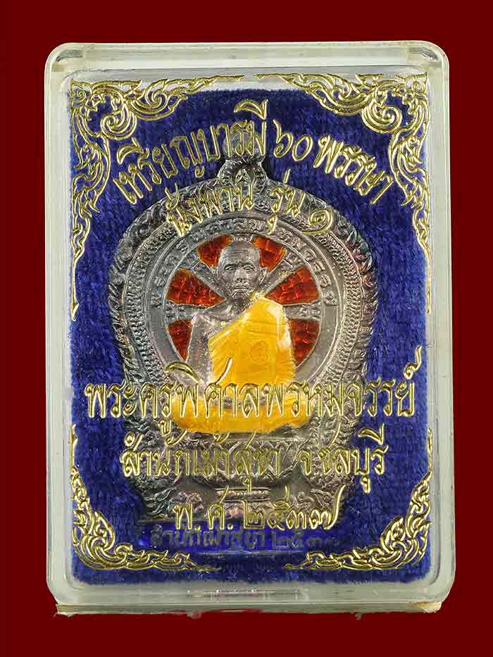 วัดใจ เหรียญนั่งพานรุ่นแรก หลวงพ่อสวัสดิ์ วัดเม้าสุขา เนื้อเงินลงยา ปี37 เลข12 |