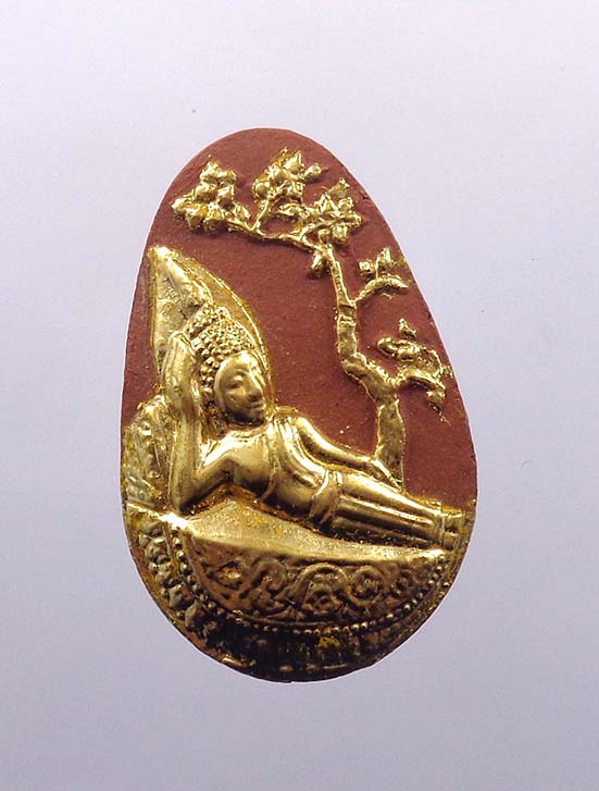 พระพุทธไสยาสน์โปรดอสุรินทราหู ด้านหลังบรรจุชนวนสมเด็จองค์ปฐม วัดท่าซุง เนื้อผงลงทอง |
