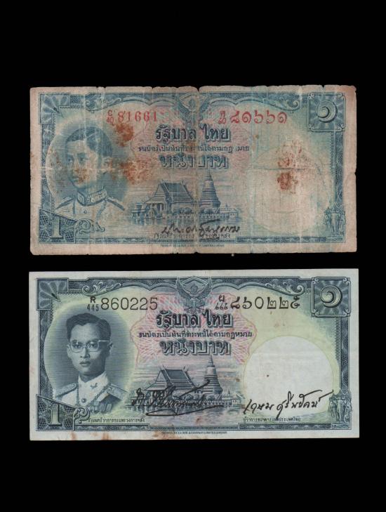 วัดใจ เคาะเดียวรับธนบัตร ชนิดราคา 1 บาท 2 ฉบับ 2 รุ่น รัชกาลที่ 8 รุ่นกรมแผนที่ และรัชกาลที่9 รุ่นโทมัส (ลายเซ็นต์ เภา-เกษม) หายาก |