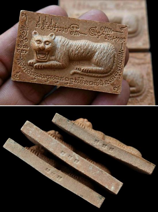 ชุด 3 องค์...เสือนอนกินทรัพย์สินพูนทวี เนื้อผงว่านยาคลุกน้ำมันเสือ หลังโรยขนเสือ + เม็ดข้าวนารอด + ก้านธูปเสก ปี 2551 หลวงปู่นิเวศน์ วัดทุ่งกระเจ็ด จ.สุพรรณบุรี พร้อมซองรูปใบฝอยเดิมจากวัด สภาพพระตามรูปที่ลงทุกประการ (ขนาดประมาณ 5.4 x 3.4 ซม.)