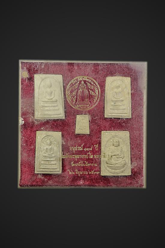 **** พระสมเด็จวัดระฆังฯ 118 ปี มีทั้งหมด 5 พิมพ์ ได้แก่ พระสมเด็จพิมพ์พระประธาน (ใหญ่) พิมพ์สมเด็จปรกโพธิ์, พิมพ์สมเด็จฐานแซม, พิมพ์สมเด็จคะแนน, พิมพ์รูปเหมือนสมเด็จฯ โต ซึ่งทุกพิมพ์ทางวัดได้สั่งจัดทำรูปแบบแม่พิมพ์ขึ้นใหม่ทั้งหมด บรรจุอยู่ในกล่องพลาสติกจตุรัส ขนาด 10X10 ซม. ฝาใสผ้ากัมมะหยี่สีแดงเข้ม ตัวหนังสือสกรีนทอง ด้านหลังตัวกล่องสีขาวครีม พื้นเป็นลายหยาบ มีรูปตราวัดระฆัง
