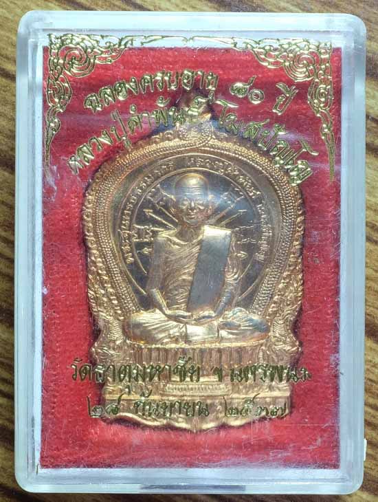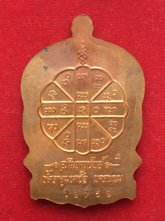 หลวงปู่คำพันธ์ วัดธาตุมหาชัย นครพนม นั่งพานอภิมหาทรัพย์ เนื้อทองแดง หมายเลข ๑๘๗๕๙+กล่องเดิม สวยๆ |