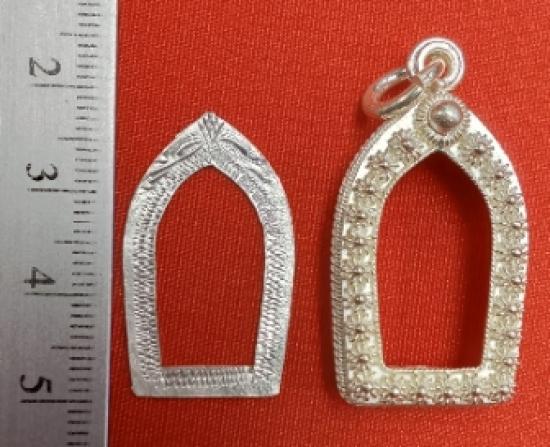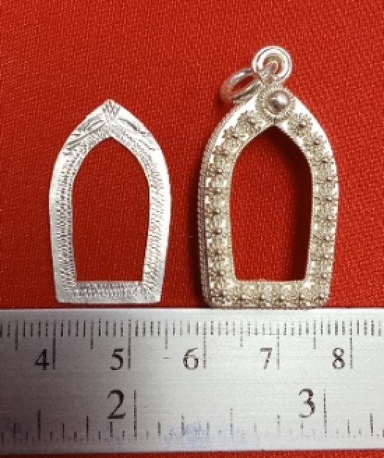 กรอบเงินสุโขทัย 96.5% ลายดอกพิกุล เนื้อหนา จอในกว้าง 1.1ซม สูง 2 ซม. ทรงสำหรับพระนาคปรกใบมะขามหรือใกล้เคียง กรอบสั่งตัดสภาพใหม่ผมสั่งไว้แล้วไม่ได้ใช้ |