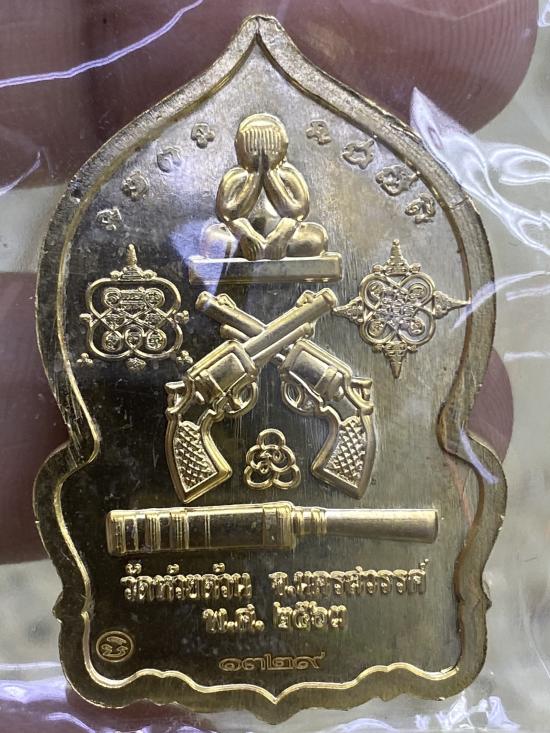 เหรียญปิดตา3 หลังปืนไขว้ รุ่น รวยมหาอุตม์ หลวงพ่อพัฒน์ วัดห้วยด้วน นครสวรรค์ เนื้อสัตตะลงยา เลข 1329 กล่อง |