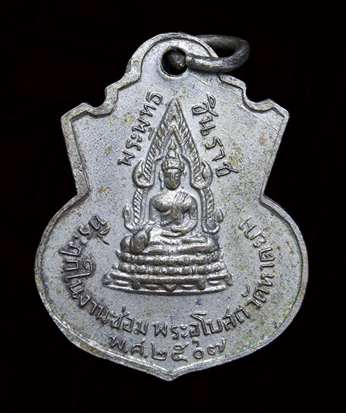 เหรียญหลวงพ่อมิ หลังพระพุทธชินราช ที่ระฤกในงานซ่อมพระอุโบสถ วัดหาดยาง ปราจีนบุรี ปี 2507 เป็นเหรียญเก่า พ.ศ.ลึกๆ