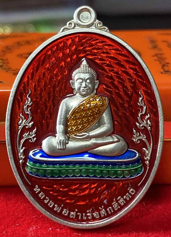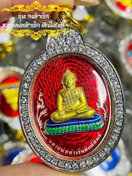 เหรียญหลวงพ่อสำเร็จ ศักดิ์สิทธิ์ รุ่น"จงสำเร็จ" วัดราษฎร์เจริญ(วัดแปดอาร์) เนื้ออัลปาก้า คุ้ยพื้นลงยาแดง ฐานน้ำเงิน-เขียวง หลังพญาครุฑลงยาตอก"พิเศษ" หมายเลข ๕ พร้อมกล่อง พระสวยมากๆคับ |