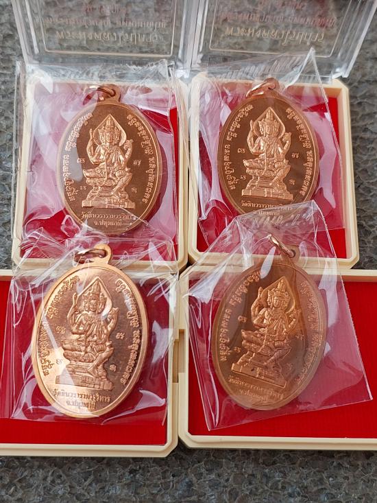 เหรียญเจริญพรบน รูปไข่ รุ่นแรก หลวงพ่อชำนาญ วัดชินวราราม จ.ปทุมธานี พิมพ์เครึ่งองค์ หลังพระพรหม(นิยม) 4 เหรียญ |