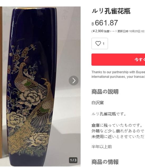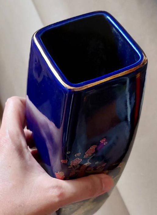 ***วัดใจ***แจกันเซรามิกญี่ปุ่น รูปทรง สี่เหลี่ยม ของสะสม สูงประมาณ 29 ซม. เส้นผ่านศูนย์กลาง 6.5 ซม. ลายนกยูงเส้นทอง |