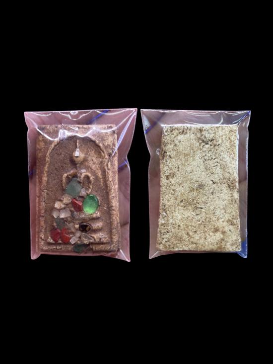 ***พิมพ์สมเด็จทรงนิยม เนื้อผงผสมมวลสารเก่า ด้านหน้าฝังพลอยหลายสีแน่นเต็มองค์ ทั้งเขียว แดง ม่วง ขาว เพิ่มความงดงามและมงคล ด้านหลังเรียบมีคราบเก่าแห้งธรรมชาติ