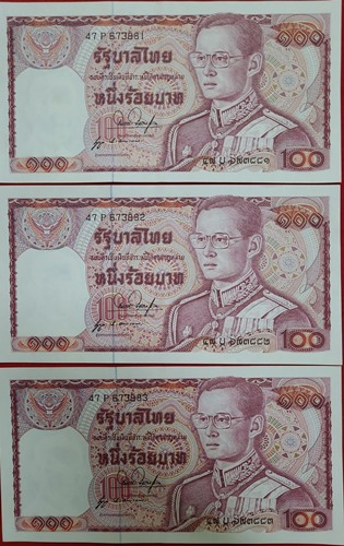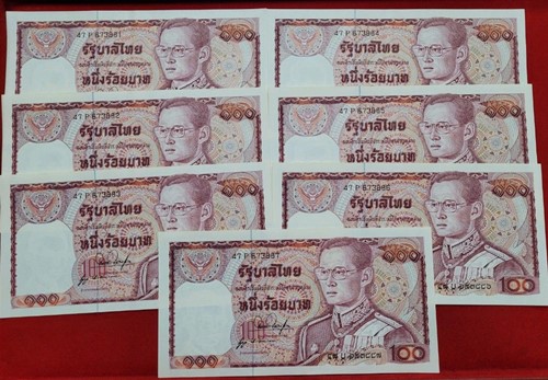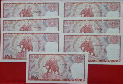 ธนบัตร 100 บาท ในหลวงรัชกาลที่ 9 แบบ 12 ด้านหลังช้างแดง เลข 6 หลัก หายาก เลขเรียง จำนวน 7 ฉบับ สภาพ UNC ใหม่,ไม่ได้ใช้,ไม่มีรอยพับ ลายเซ็น สมหมาย ฮุนตระกูล - นุกูล ประจวบเหมาะ |