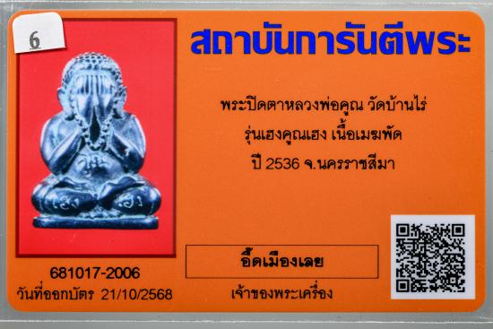 หลวงพ่อคูณ พระปิดตารุ่นเฮงคูณเฮง ปี 36 เนื้อ เมฆพัตร สร้างน้อย หายาก พร้อมบัตรรับรอง