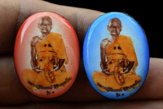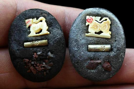 ชุด 2 องค์...ล็อกเก็ตอธิษฐานสมปรารถนา รุ่นแรก ฉากน้ำเงิน + ฉากแดง หลังบรรจุผงมวลสาร + สิงห์แกะ + ตะกรุดเงินตอกโค๊ต + แร่ศักดิ์สิทธิ์ ปี 2551 หลวงปู่นิเวศน์ วัดทุ่งกระเจ็ด จ.สุพรรณบุรี พร้อมซองรูปใบฝอยเดิมจากวัด สภาพพระตามรูปที่ลงทุกประการ (ขนาดประมาณ 3.4 x 2.5 ซม.)