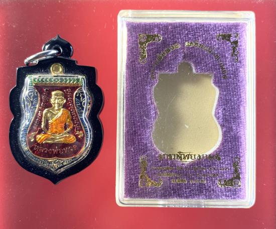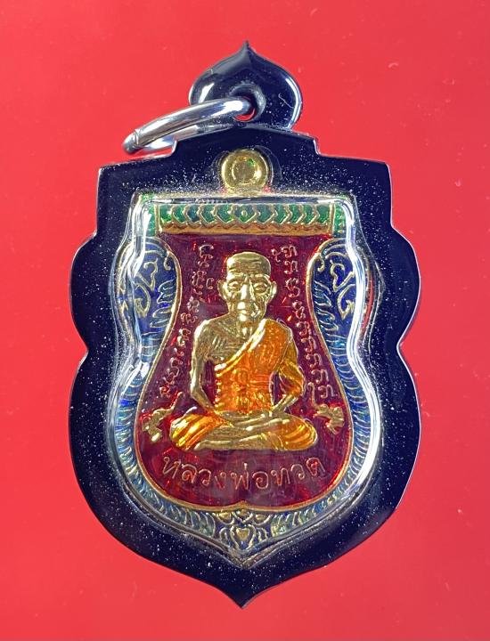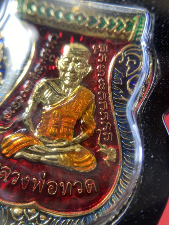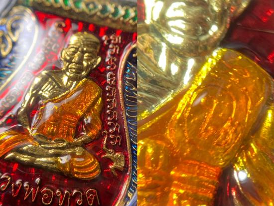 เนื้อกะไหล่ทองลงยาราชาวดี จำนวนการสร้าง 1,000 องค์ สภาพ 100% เลี่ยมพลาสติกกันน้ำพร้อมอาราธนาบูชา