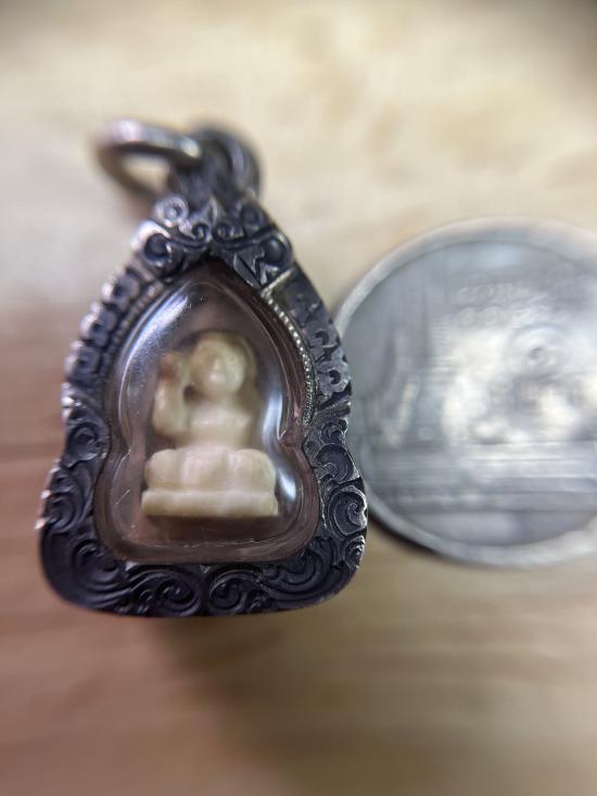 นางกวักงาแกะ เลี่ยมเงิน ไม่ทราบที่ครับ