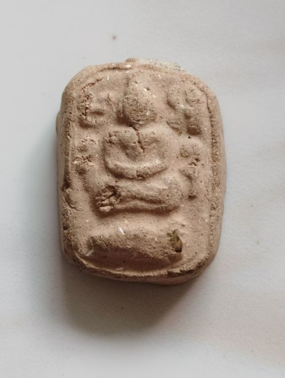 พระเนื้อดินหลวงพ่อปาน วัดบางนมโค ทรงปลา ปี27 (หลวงพ่อฤาษีลิงดำ ร่วมเสก) อุดผงล้นๆ