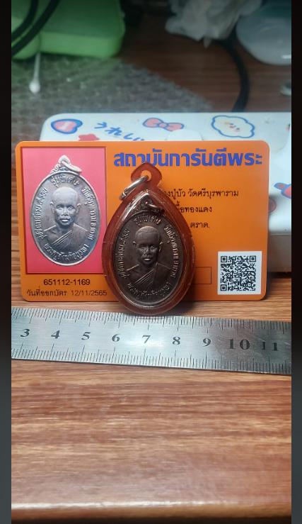 เหรียญรุ่น2 หลวงปู่บัว วัดศรีบูรพาราม ปี2533 เนื้อทองแดง +บัตร +เลี่ยมกันน้ำ
