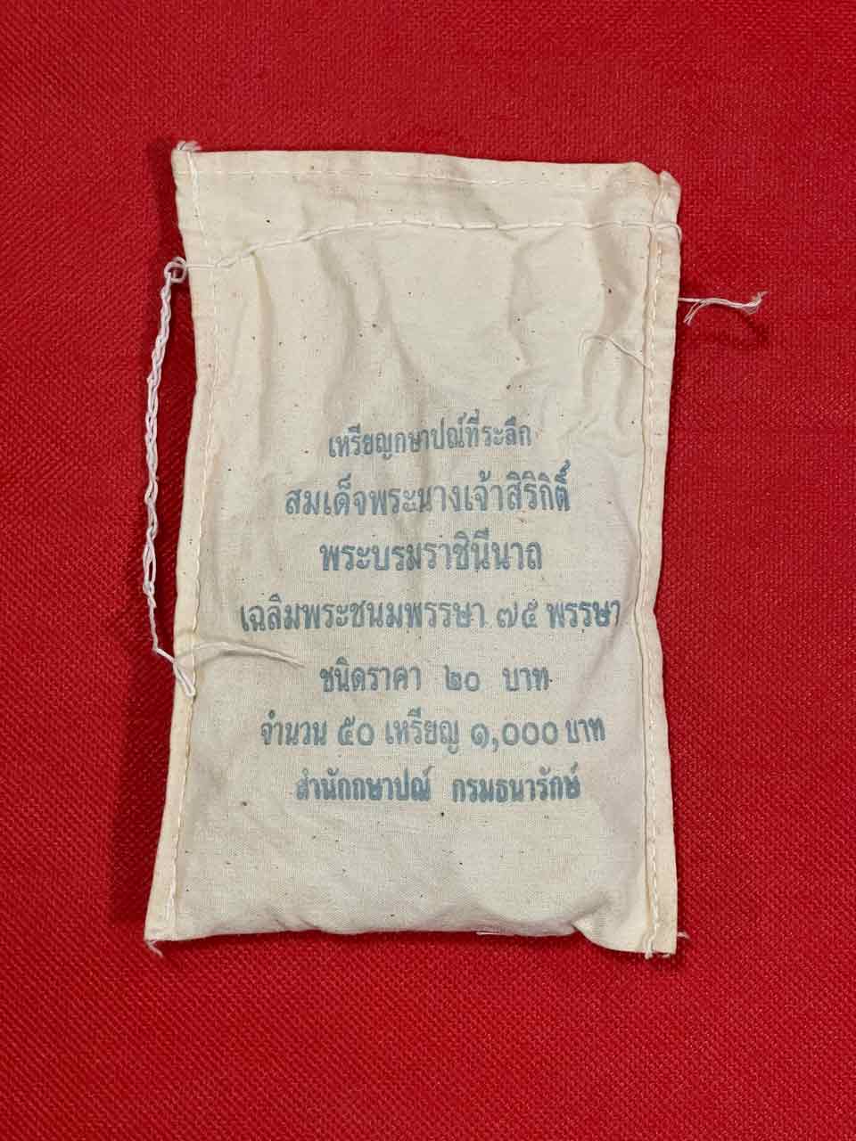 เหรียญถุง 20 บาท สมเด็จพระนางเจ้าสิริกิติ์ พระชนมพรรษา 75 พรรษา