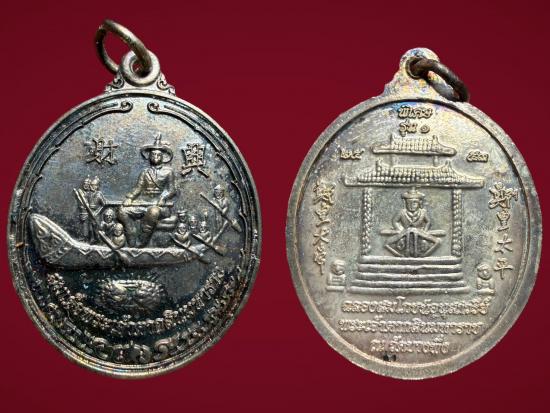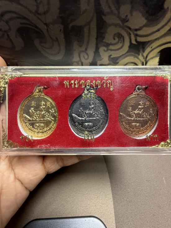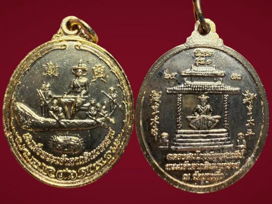 เหรียญสมเด็จพระเจ้าตากสินทรงเรือ วัดบางพึ่ง จ.สมุทรปราการ ปี ๒๕๕๓ พิเศษ รุ่น ๑ ฉลองสมโภชน์อนุสาวรีย์พระเจ้าตากสินมหาราช ชุดพระของขวัญ มั่งมี เนื้อทองทิพย์ เงินแท้ นาก(ทองแดง) หายากพบเจอน้อยมาก พร้อมกล่องเดิม |