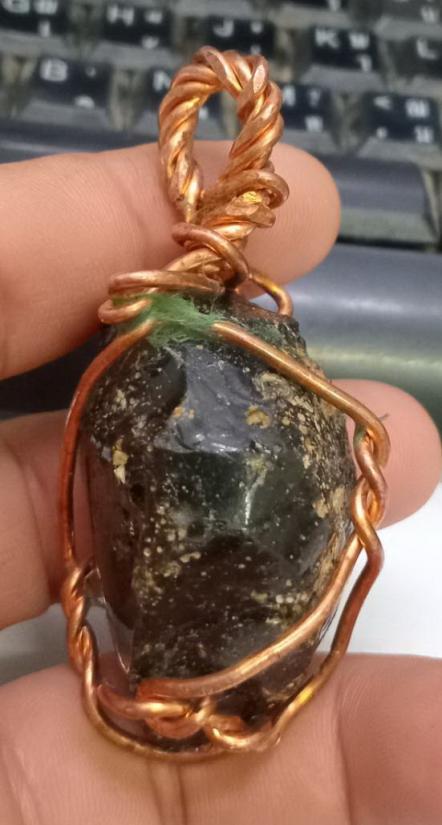 อุลกมณีพันทองแดงเป็นห่วง สำหรับห้อยกล้อง หรือคล้องเป็นพวงกุญแจ หรือสะเก็ดดาวตก เป็นของทนสิทธิ์ พกบูชาติดตัว เชื่อว่าสามารถกันคุณไสย และสามารถดูดพิษสัตว์ได้ |