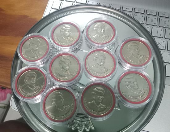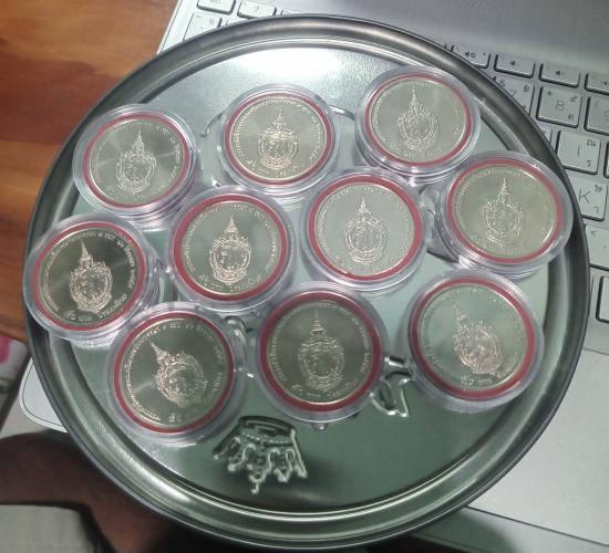 เหรียญ 50 บาทที่ระลึกสมเด็จพระนางเจ้าสิริกิติ์พระบรมราชินีนาถพระพันปีหลวง ๕ รอบ พร้อมตลับรักษาผิว ชุด 2 จำนวน 10 เหรียญ |