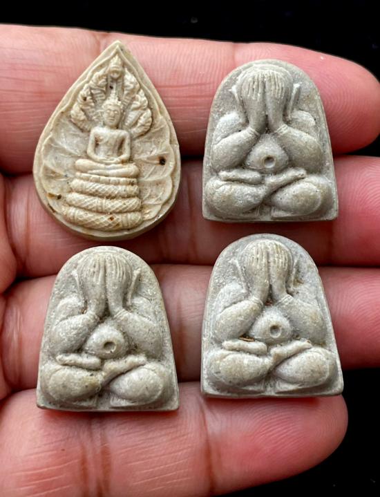 วัดใจ พระปิดตา หลังยันต์ใบพัด + พระผงนาคปก หลวงปู่ม่น วัดเนินตามาก จ.ชลบุรี |