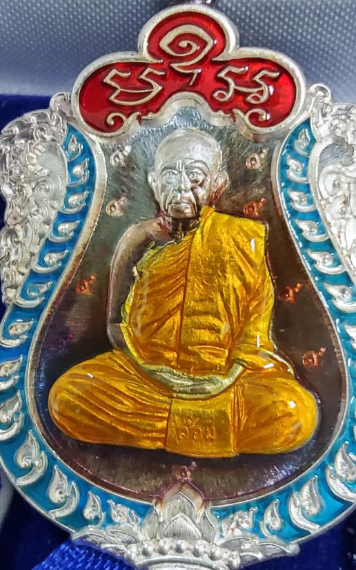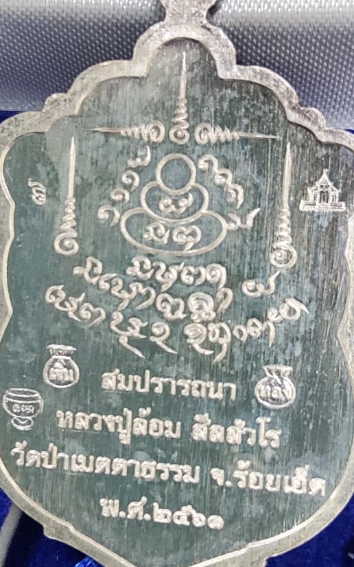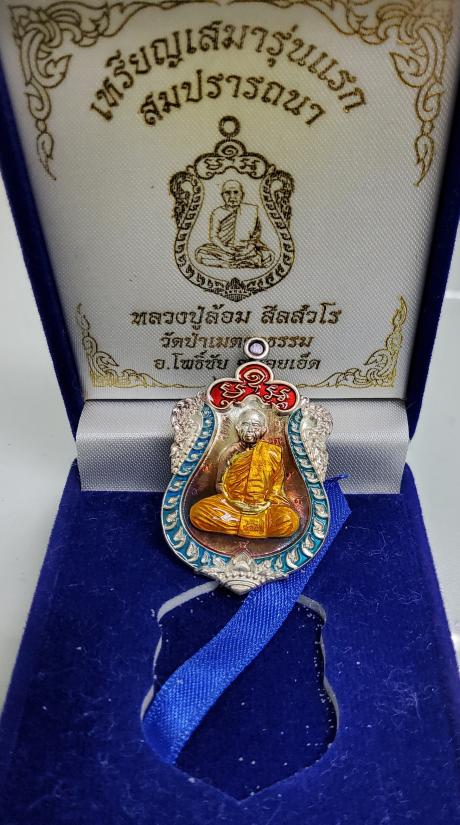 เหรียญเสมา รุ่นแรก สมปรารถนา หลวงปู่ล้อม สีลสวโร วัดป่าเมตตาธรรม ปี 2561 เนื้อเงินลงยา ตอก ๙ รอบ หมายเลข ๗